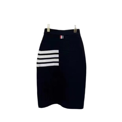 Ladies Wool Skirt Striped Design Original High Casual Famous Knitting Mid-Length High Waist Skirt