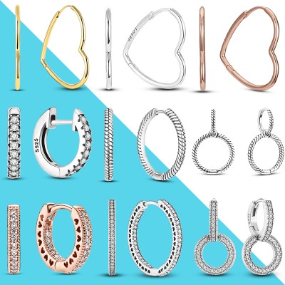 Charm Double Hoop Earrings 925 Silver Sparkling Pave Stud Earring Gift For Women Engagement Jewelry Anniversary
