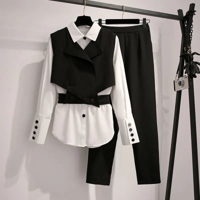 Women's Plus Size Suit Spring and Autumn Slim Vest Three-piece Female Office Professional Suit
