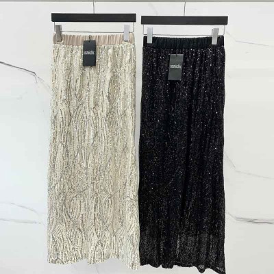 Sparkling Sequin Straight Skirts Elegant Elastic Waist Soild Color Skirt Temperament Women Clothes 2color