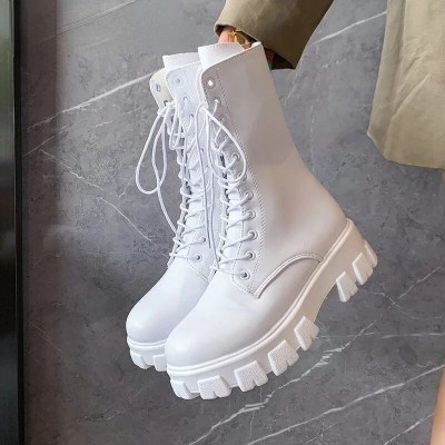 Autumn and Winter Middle Boots Lace-up Zipper Botas Mujer Sports Thick-soled Martin Boots Casual Women's Shoes
