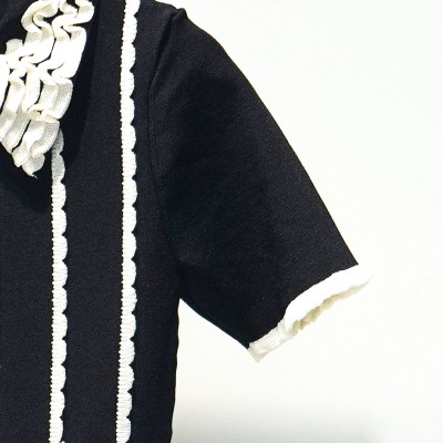 Autumn and Winter Women's Embroidery Hollow Lace Stitching Knitted Dress Female Little Black Dress