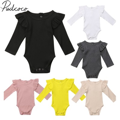 Newborn Infant Kids Baby Girls Autumn Causal Bodysuits Ruffles Long Sleeve Solid Warm Jumpsuits Outfit 0-24M