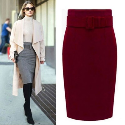 Autumn Winter Style Cotton Plus Size High Waist Saias Femininas Casual Midi Pencil Skirt Women Skirts Female De