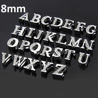 1pc A-Z 8mm Clear Half Rhinestone Slide Letters Fit DIY Wristband Bracelet Pet Collar Jewelry Making