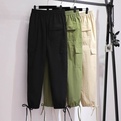 150Kg Plus Size Women's Spring Summer Drawstring Cotton Cargo Pants Loose Casual Cropped Trousers 5XL 6XL 7XL 8XL 9XL 3 Colors