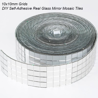 10x10mm Grid 1meter Self-Adhesive Square Glass Mosaic Tiles Sliver Mirrors Mosaic Sheets For DIY Handade Crafts Wall Sticker