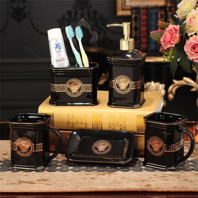 Bathroom Accessories Set Ceramic Liquid Soap Dispenser Toothbrush Rack Gargle Cup Wedding Gift Birthday Present Free Shipping