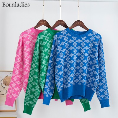 Bornladies Geomastric Knit Women Sweater Autumn Winter O Neck Female Jumper Cozy Pullover Knitted Pull Outfits