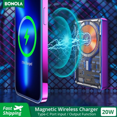 Bonola Transparent Magnetic Wireless Charger Power Bank for iPhone 13 12 Acrylic Armor Portable Mobile Power for Andriod/iPhone