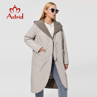 Astrid Spring Women's Parkas Plus Size Thin Cotton Elegant Long Jackets Female Coats with Hooded Big Pockets Belt Outerwear