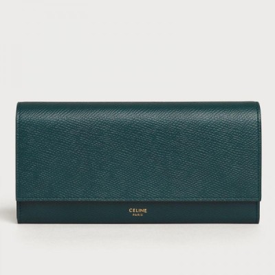 Celine Large Flap Wallet In Amazone Grained Calfskin