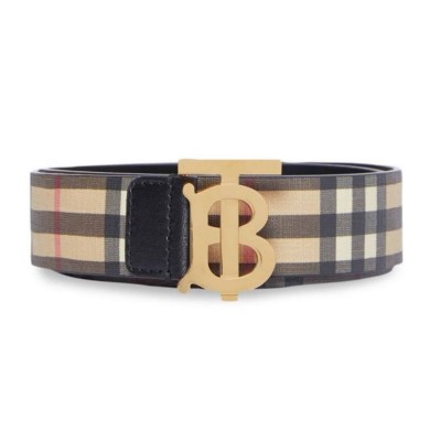 BURBERRY REVERSIBLE MONOGRAM MOTIF VINTAGE CHECK BELT IN ARCHIVE BEIGE – B27