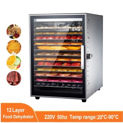 12-Layer 800W Food Dehydrator Dryer Fruit Dryer Commercial Stainless Steel Food Dryer Dried Vegetables and Pet Snacks