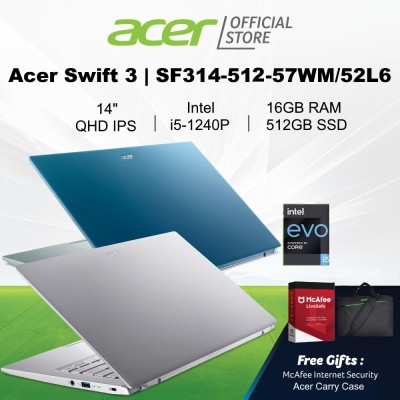 [12th Gen i5-1240P] Acer Swift 3 SF314-512-57WM/52L6 14-inch QHD IPS 300 Nits 100% sRGB laptop | 16GB RAM