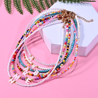 Bohemia Beaded Choker Necklace For Women Short Boutique DIY A-Z Letter Shell Pendant Female Neck Chains Bead Party Jewelry