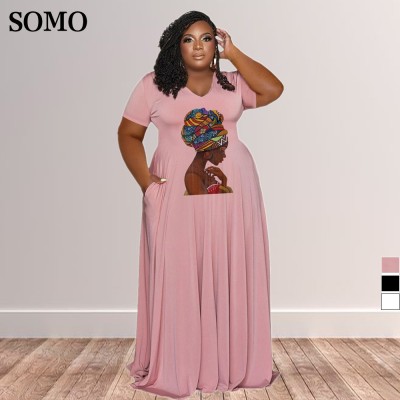 Casual Dresses for Plus Size Women Clothing Printed Long Dress Maxi Ladies Elegant Pleated WholeDropshipping