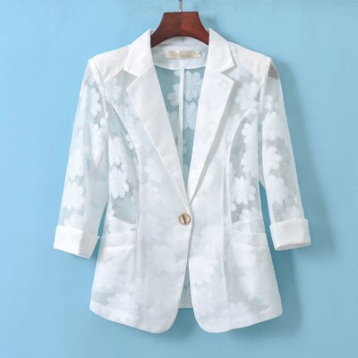 5XL Spring Summer Women Thin Cardigan Sun Protection Clothing Hollow Lace Slim Shawl Top Office Ladies Work Wear E103
