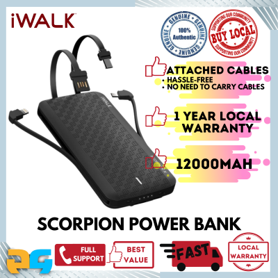 iWalk Scorpion Pro 12000w Built in PD (Power Delivery) Type-C Cable, Fast Charge Lightning Cable & Micro & USB Wireless Power Bank