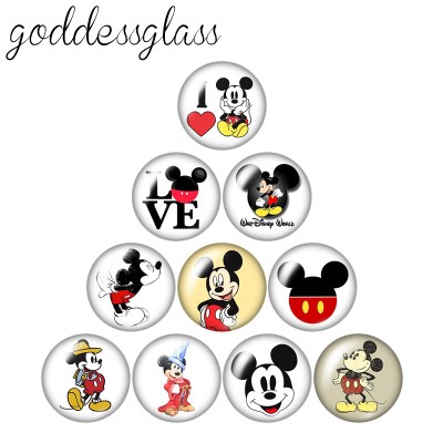 Disney Mickey Mouse Cute Cartoon 10pcs 12mm/18mm/20mm/25mm Round po glass cabochon flat back Necklace Making findings