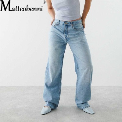 Women Wide Leg Jeans Blue Loose Denim Trousers Ladies High Waist Casual Straight Pants Boyfriend Mom Jeans Streetwear