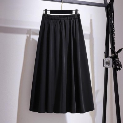 Black Spring and Autumn High Waist Skirt Women's Mid-Length Bottoming Skirt Pleated Fairy Dress Summer