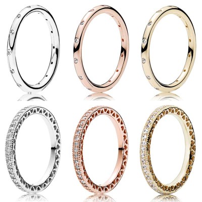 Authentic 925 Sterling Silver Ring Rose Sparkling Droplet Stack Love Hearts Ring With Crystal For Women Gift Pandora Jewelry