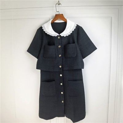 Spring and Autumn Doll Hook Flower Large Lapel Woolen Dress Single Breasted