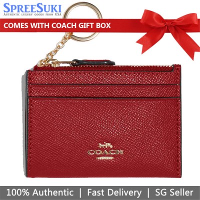 Coach Card case In Gift Box Crossgrain Leather Mini Id Skinny 1941 Red # 88250