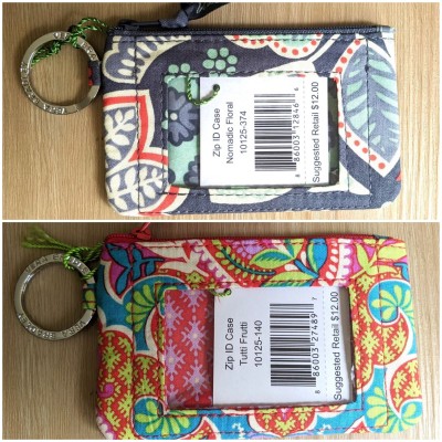 Bundle of 2 - Vera Bradley Zip ID Card Holder/ Purse/ Key Ring (5 Cols)