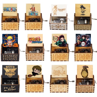 Antique Carved Wooden Hand Crank Totoro Beauty And Beast Music Box Gift Birthday Gift Supply Toy For Children New