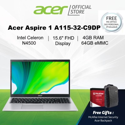 Acer Aspire 1 A115-32-C9DP(Silver) Laptop 15.6-Inch FHD Display with Preloaded Microsoft Office 365 Personal