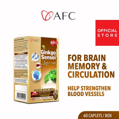 AFC Japan Ginkgo Sensei Supreme Ginkgo Biloba Extract for Brain Focus Memory Concentration Blood Circulation & Pressure Cold Numb Hands Feet Body Stiffness • Made in Japan • 60 Capsules