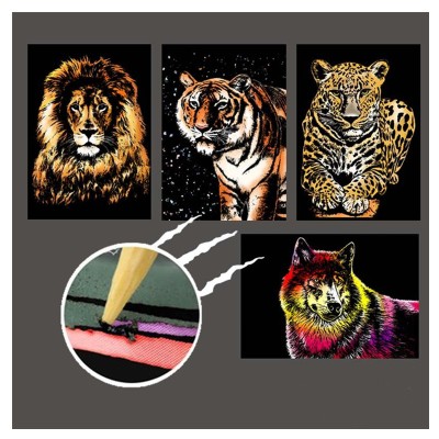 21*29cm 4PC DIY Scratch Paintings Card Landscape Animal Handmade Home Decor Picture Creative Gifts decompression Drawing Toys
