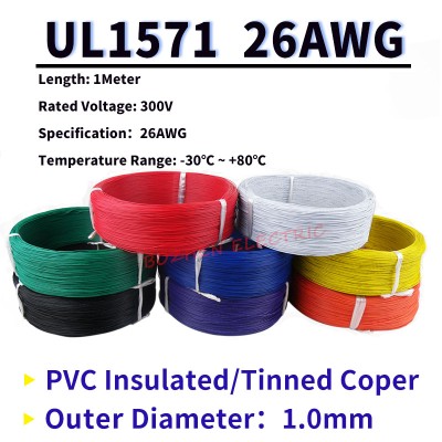 1M UL1571 26AWG PVC Electronic Wire Flexible Cable Insulated Tin-plated Copper Environmental LED Line Colorful