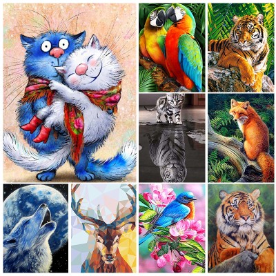 Animals 5D Diamond Painting Kits Wolf Tiger Cat Picture Full Diamond Inlaid Embroidery Handicraft Cross Stitch Home Decor Gift