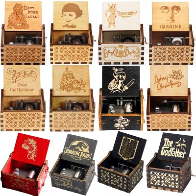 52 Theme Wooden Hand Crank Music Box Bohemian Rhapsody Theme Queen Jurassic Park Dragon Ball Birthday Gift