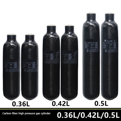 0.36L/0.42L/0.5L Black Carbon Fiber Gas Cylinder 30MPA High Pressure Air Cylinder Portable Oxygen Tank M18*1.5 Universal Thread